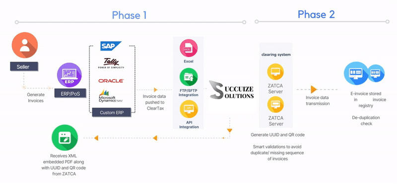 How to be e-Invoicing ready? In Phase I, check the internal system’s readiness with ERP integrations. In Phase II, Succuize ERP robust platform will integrate with SUCCUIZE Solution systems directly without any changes in your ERP.
