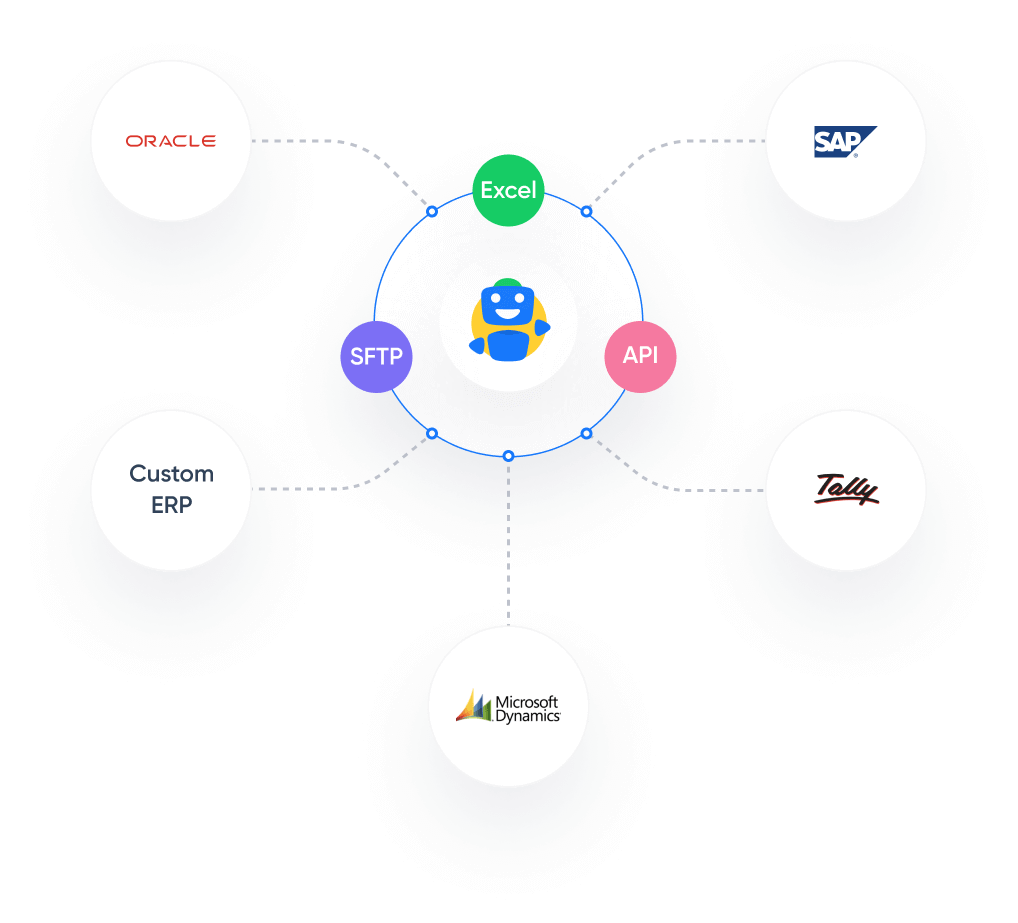 Integrate over API, SFTP and connectors with any ERP